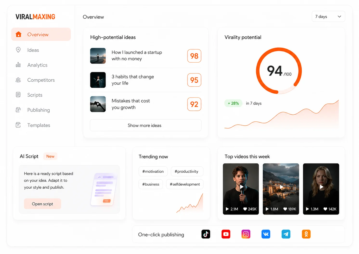 Ready-to-shoot Reels and Shorts scripts in your style and voice.